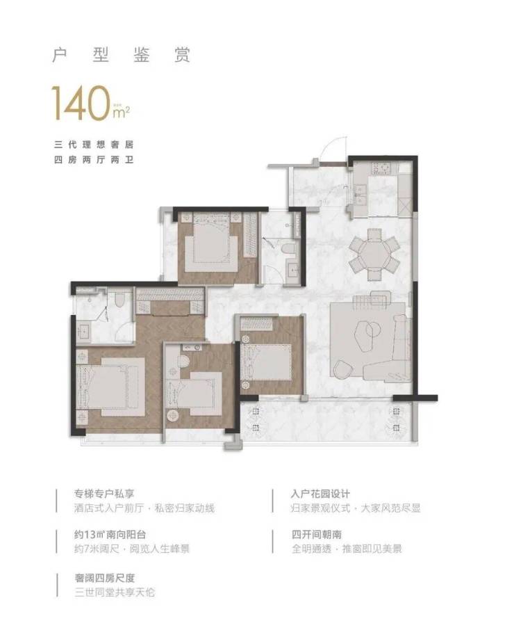 1. 140㎡ 四房二卫户型