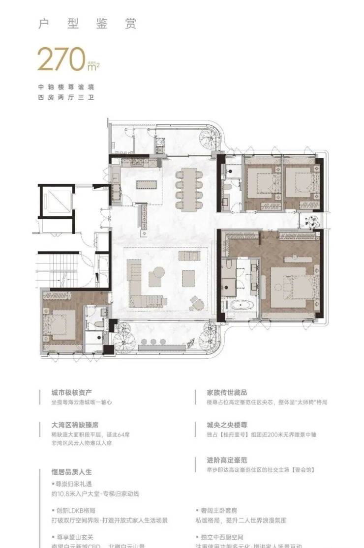 3. 270㎡四房三卫户型