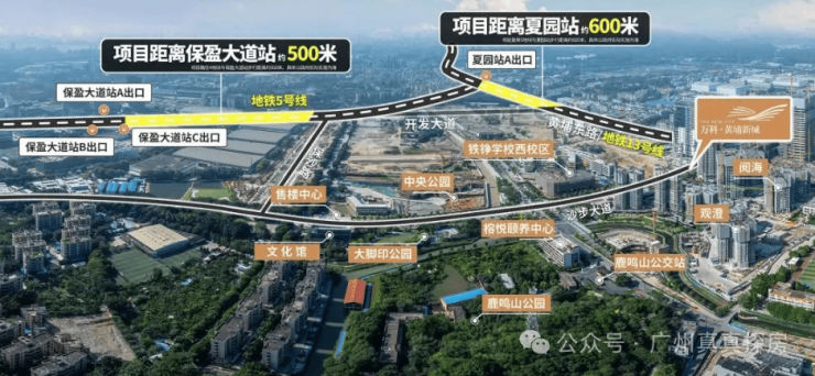 近5号线双地铁口,直达珠江新城:2地铁(5/13号线),5号线保盈大道、夏园站(已通车)无需换乘,直达珠江新城CBD;通过13号线夏园站,4站直达鱼珠CBD,5站到天河,二期开通后不换乘直达珠江新城。