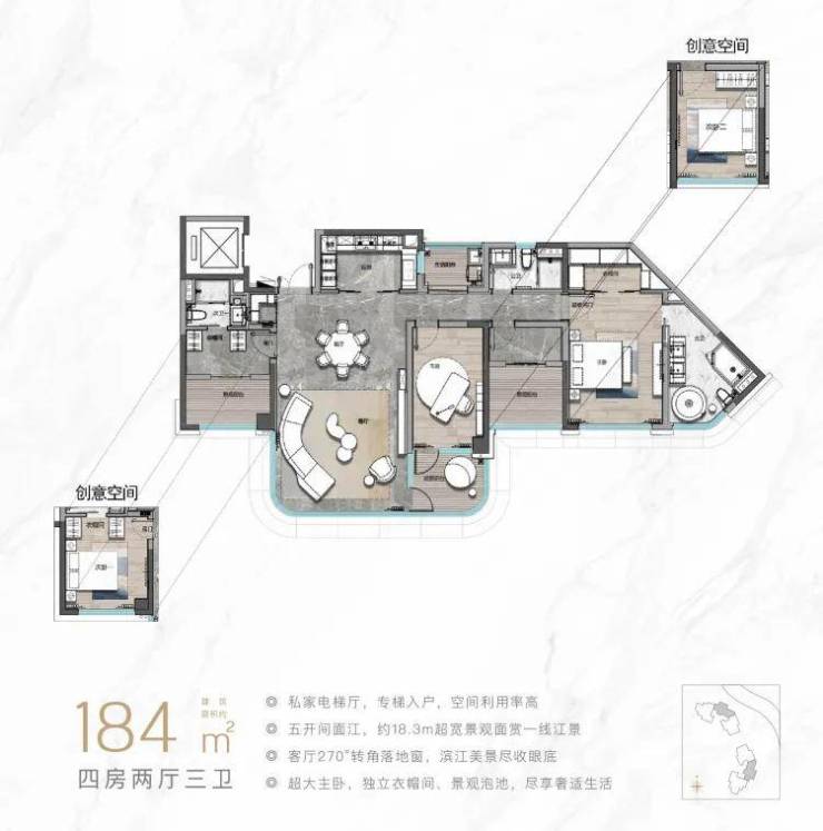 广州滨江上都一期璇湾,主推建面约109-253㎡一线瞰江华宅、建面约350㎡临江大平层公馆。
