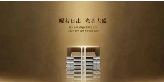 外立面以香槟金搭配大面积的弧形玻璃,形成镜面质感,未来将与临江大道项目共建豪宅天际线。