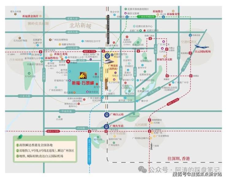 祈福万景峰位于花都区新华街繁华城区中心(新街大道),广州北站西侧,广清高速出口东侧,紧邻已开通的地铁9号线广州北地铁站A出口及规划中的地铁24号线,瞬达广州各区。