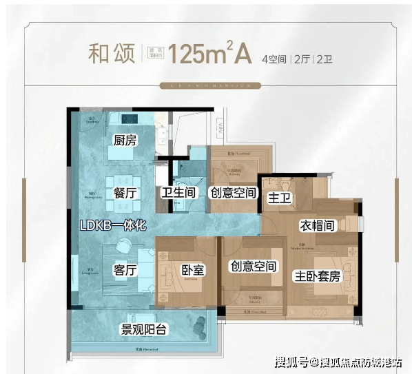 建面约115㎡四房两厅两卫:四开间朝南,LDK一体化设计,餐客厅连通大阳台,视野开阔,满足多孩家庭或三代同堂需求。