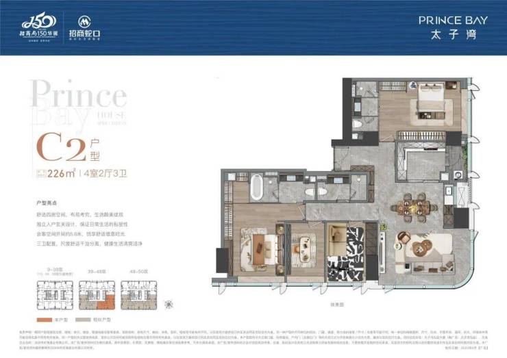 ◎ 多维交通:海(蛇口邮轮中心)、陆(南海大道、港湾大道、望海路)、空(深圳宝安国际机场、香港国际机场、澳门国际机场、珠海金湾机场)轨(2号线蛇口港站、5号线赤湾站、12号线太子湾站、口岸(深圳湾口岸)多维交通网,集汇聚于太子湾·泓玺,最终成就塔尖人物的全球商务生活圈。