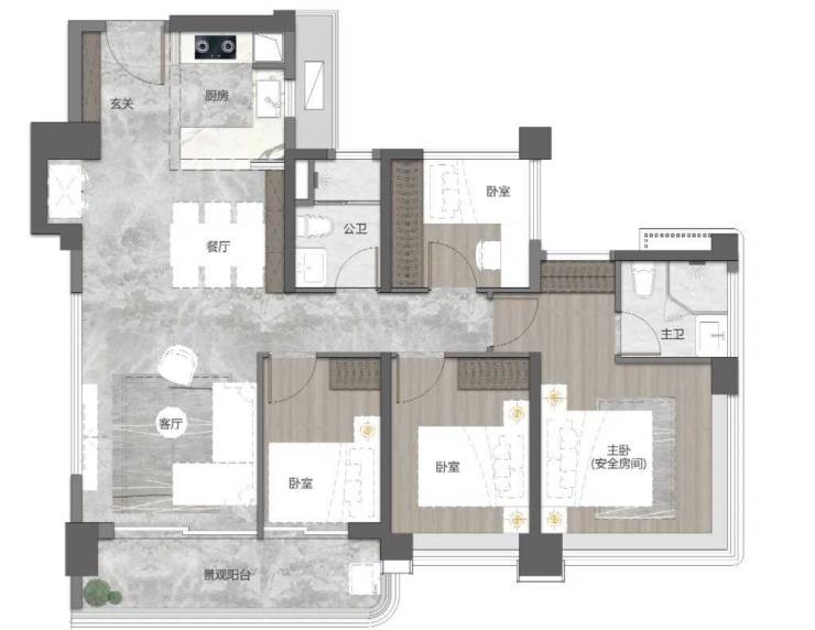 ✅步入式套房主卧,私密性与舒适度兼备,小面积实现大四房功能。