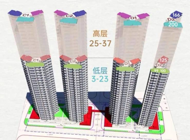 整体规划从街区大盘视角出发,通过开放,整合,绽放的策略和方法链接整体大盘,让整体片区更美好。4栋点式塔楼一字排开,底盘适当开放边界,实现资源共享·城市共荣,打造高开放性、呼吸感的立体生境街坊。
