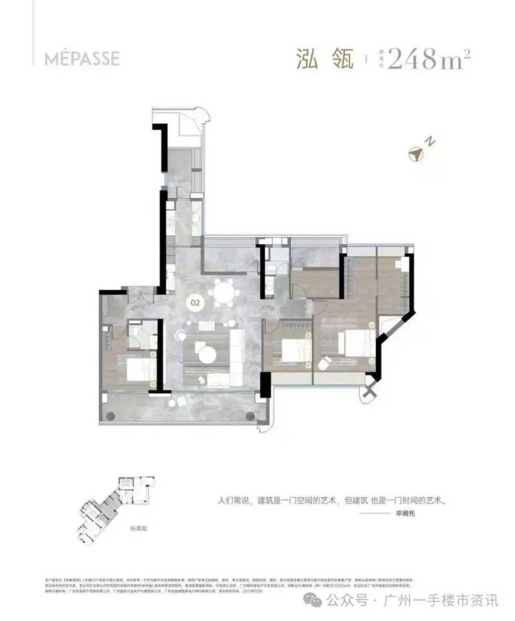 琶洲·樾|华樾住宅一层仅打造三户200㎡以上的大面积户型,户型涵盖248㎡、254㎡、330㎡全四房产品,西南向楼栋为248㎡和254㎡户型,正南向楼栋则为330㎡户型,全部都是专梯入户设计,由于琶洲·樾|华樾住宅货量非常稀少,业主的私密性将会更高,圈层也更为纯粹。