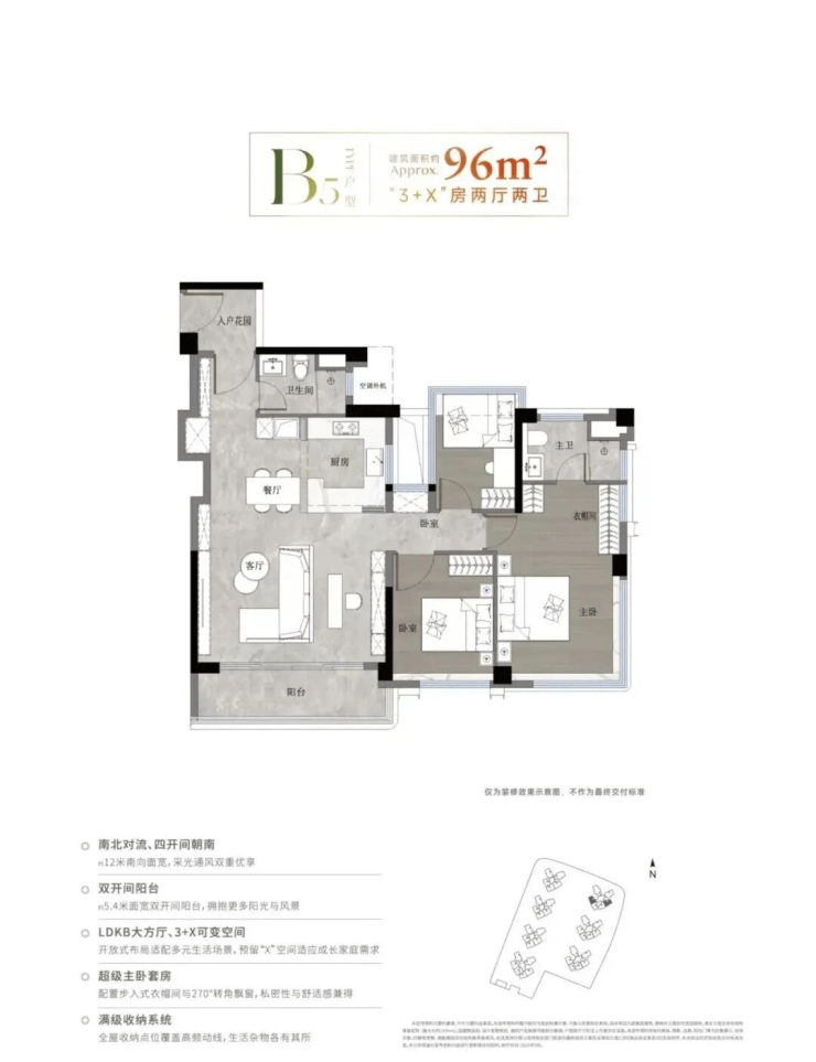 •96㎡:3+1房2厅2卫