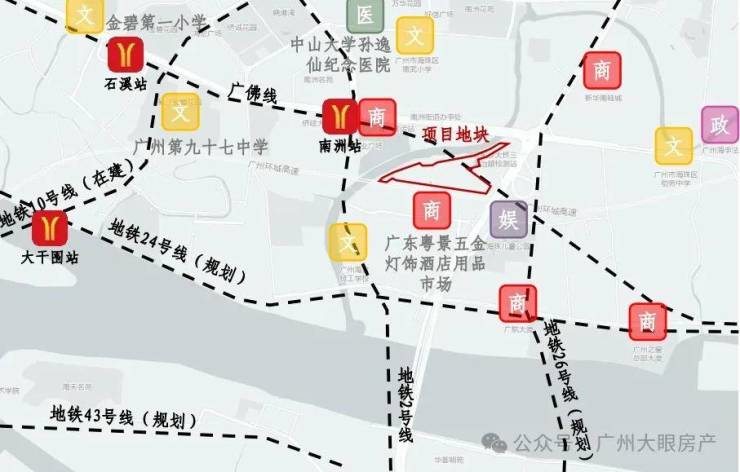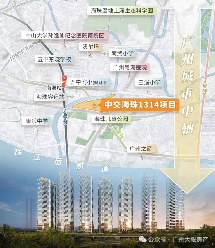 项目距离2号线和广佛线交汇的南洲站直线距离仅约500米,目前北濠涌规划引桥已开建,计划于今年内建成并开通,届时项目通达南洲地铁站将更为便捷。
