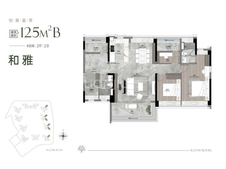 建面125㎡4居:850-950万,2梯3户,层高3.1米,总楼层27F;