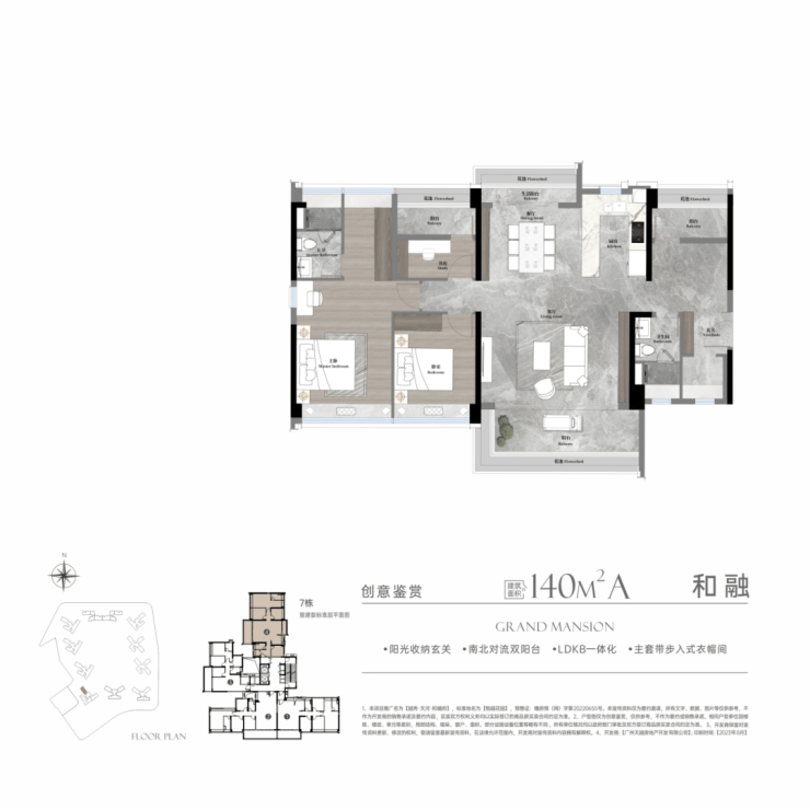 建面140㎡3居:980-1100万,2梯4户,层高3-3.1米,总楼层27-30F;