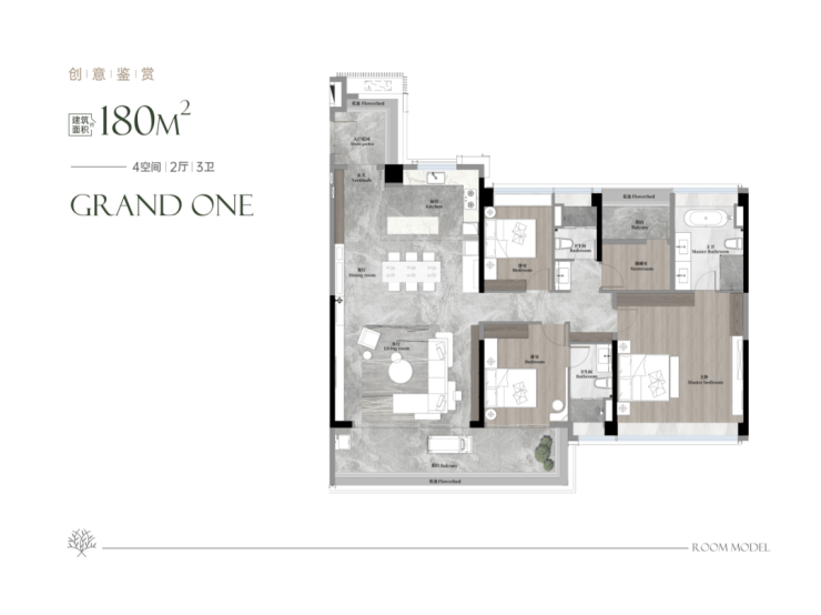 建面180㎡4居:1500-1690万,2梯3户,层高3.1米,总楼层27F。