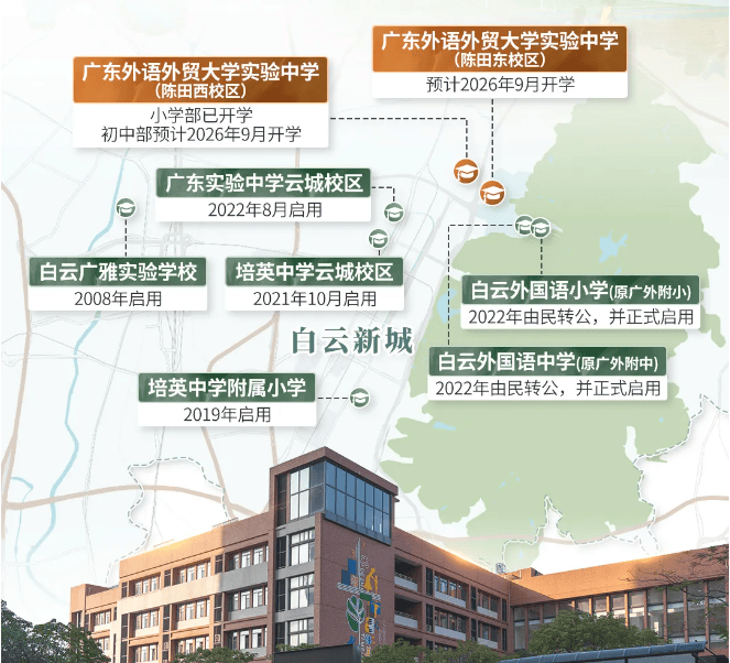 白云区一共有226所中小学(小学162所,初中41所,九年一贯制14所,十二年一贯制2所,完全中学2所)。除去广外附中、白云广雅、华师附中、华师附小等名校,2020年新落户省实验中学白云新城校区、北大培文、培英中学等名校,每年可为招商企业提供中小学公办学位约1600个。白云区共有28所高校,包括南方医科大学、广州中医药大学、广东外语外贸大学等;