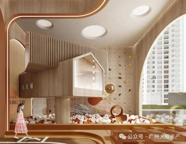架空层结合景观及屋顶花园,设置城市会客厅、童趣梦岛主题乐园、知行书社、24小时便民自助区、自然课堂、棋牌室、休闲座椅区、儿童游乐区、健身区、泳池更衣淋浴室等高端配套泛会所。为业主带来便捷、品质的社区娱乐生活。