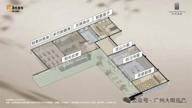 自带会所,会所经营项目功能:全龄化润心社【会所】,涵盖八大主题:轻氧训练室、多巴胺健身、无限商店、配套盒子、阳光长廊、吉山小座、创习书屋、灵感剧场。