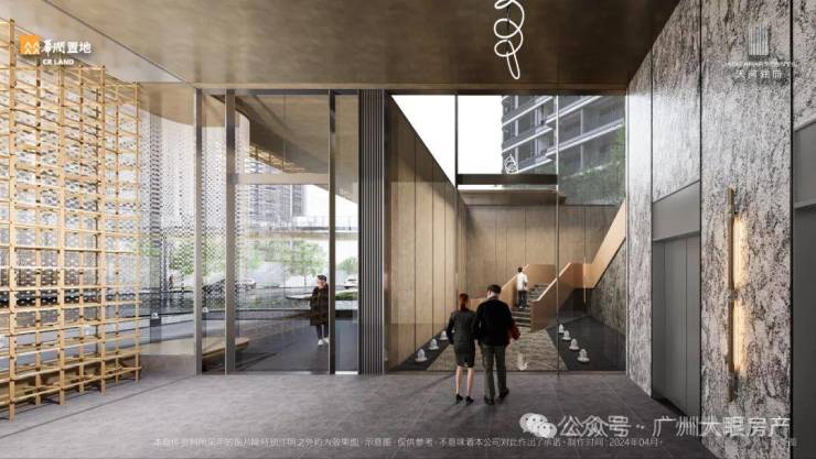 立面整体风格现代简洁、端庄典雅,选用低饱和度色彩,温润自然的材质,体现沉静含蓄的城市群像;以大面玻璃为底,突出水平线条的疏展,形成具有东方意蕴的立面秩序;结合岭南广府元素的现代演绎,在近人尺度体现细节品质。
