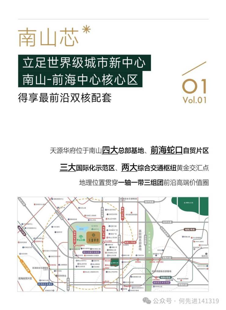 天源华府项目位于南山中心,“前海&科技园”双核心-南山南头,中山公园旁,稀有改善型宽宅,奢阔尺度,户户大阳台、大飘窗,下楼就是49万㎡中山公园绿地,可以悠闲的散步、锻炼身体、溜娃,出门就是地铁12号线(中山公园站),开车10分钟到科技园。