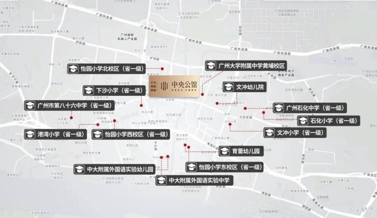 教育资源方面,一公里范围内有怡园小学(北校区)、怡瑞小学、广大附中黄埔实验学校(东校区)、广州市第八十六中学(初中部)等超10所学府环伺。