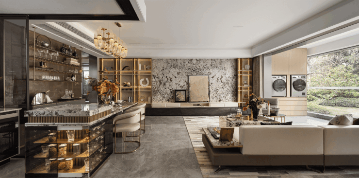 从售楼部、洽谈区到样板间,处处都能体验项目公馆大宅的豪华风格。