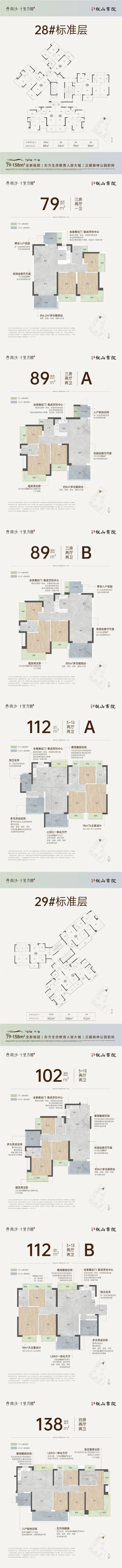 户型设计是很多人看盘时最关心的点。悦山书院这次推出的主力户型以建面约89-143㎡为主,涵盖三房两厅两卫到四房两厅三卫,整体偏向南向或者南偏东向,采光通风条件都不错。很多户型做到了动静分离,客餐厅一体化设计,公区方正大气,使用率普遍较高。部分改善户型还带有飘窗、阳台转角窗甚至入户花园,居住体验上相比普通刚需盘有明显提升。值得一提的是,三期在立面和园林用材上相比前期也有升级,整体呈现出来的质感更现代、更有层次。