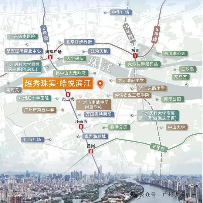 项目其实不是很近地铁站,最近2号线市二宫站步行距离大约1.2公里,有点不上不下的距离,最好是电动车需要接驳,一站江南西/海珠广场,2站昌岗/公元前,东侧还有10号线滨江东站也已经开通了