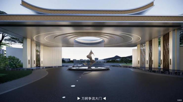 一进:“万舸争流”城市封面,以千年海丝之路为魂,风帆为引,铸就高约10.8米、延展约126米的城市门楼封面,百米林荫礼宾长廊,让归家成为尊崇仪式的开端。