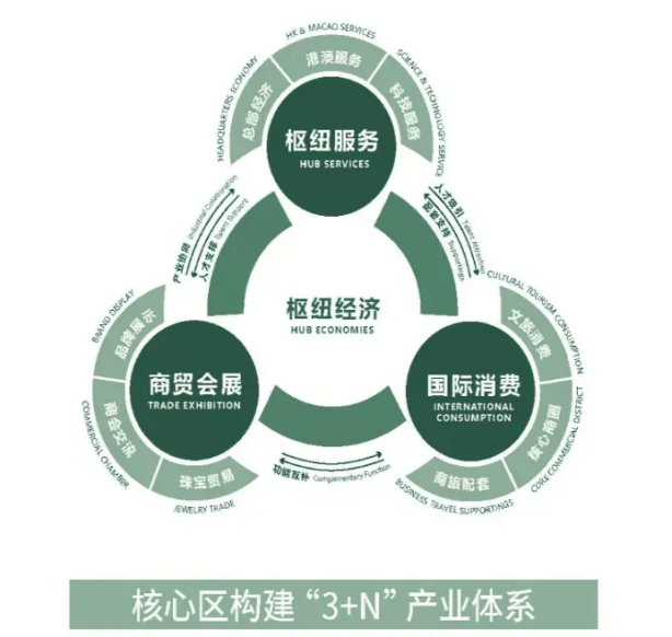 在产业方面,广州南站核心区则是构建“3+N”产业体系,覆盖大湾区1小时生活圈。为企业落户提供良好经济生态,将高技术产业留下来