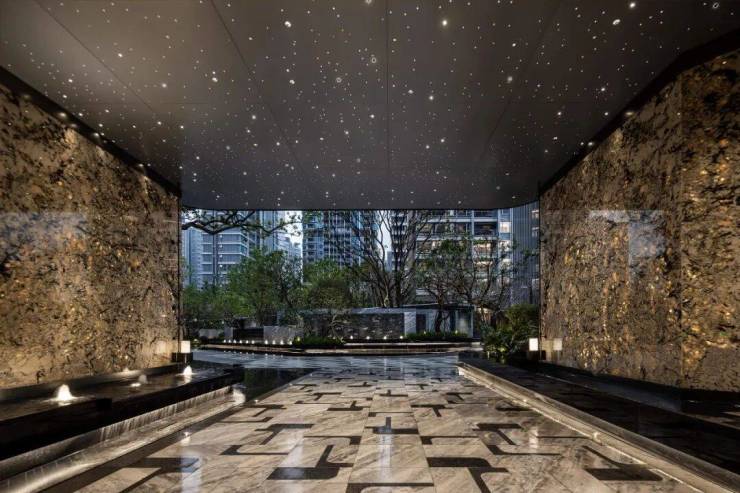 空间即情绪:重新定义归家动线,把岭南四大名园的造园逻辑搬进地下车库。21种奢石、假山水景、绿植光影,构建“园中园”式沉浸感,归家像是一场穿越山水的仪式,一步一景,步步入境。