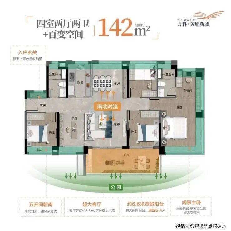 280㎡五房户型:100㎡公区+4个阳台打造50㎡空中花园,270°观景视野;