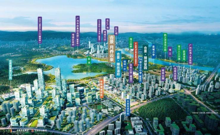 合景泰富·月养云来位于广州增城区荔湖新城核心,坐落于湖心岛上,拥有稀缺的湖景资源。