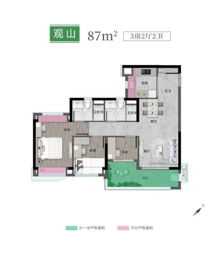 【王牌户型】86/87㎡三房两卫;