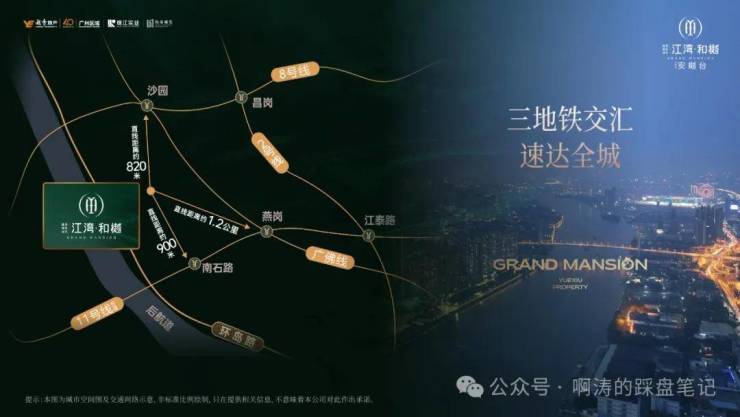 换乘之王8号线沙园地铁站:约800米(百度地图直线测距)