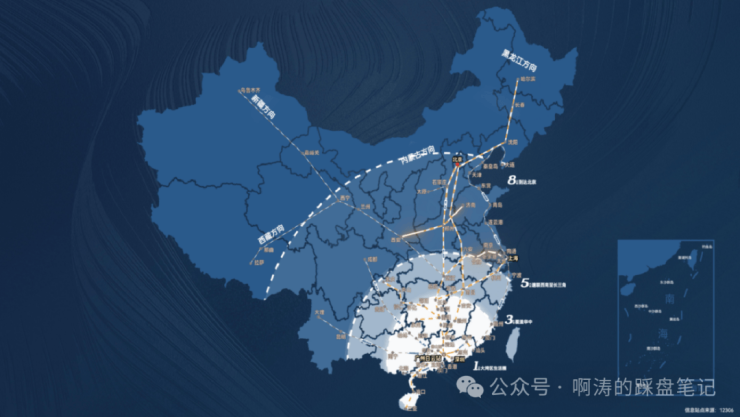 集高铁(京广/广湛等干线)+城际(广清/佛穗环线)+6地铁(已通8号线)+空港联运于一体,形成10分钟主城生活圈/30分钟湾区经济圈/1小时华南城市网的时空折叠效应。