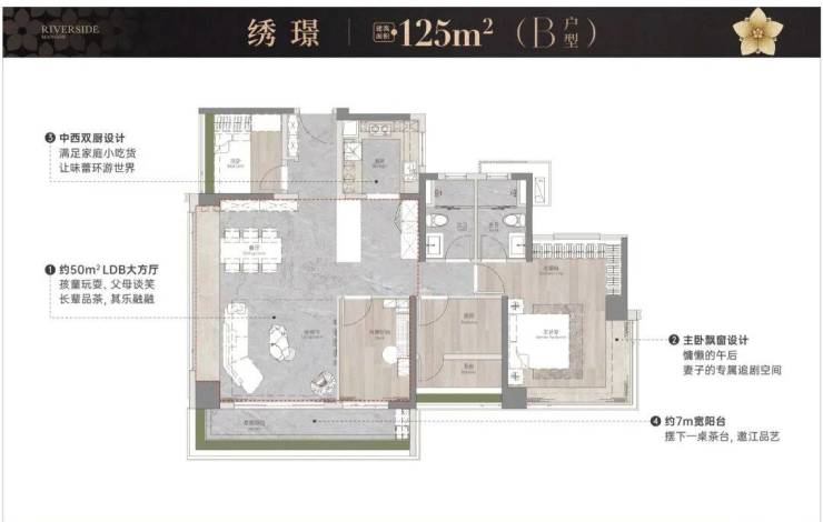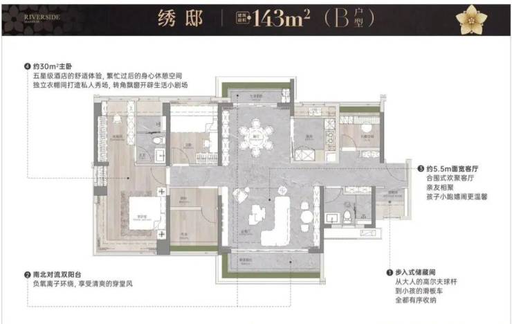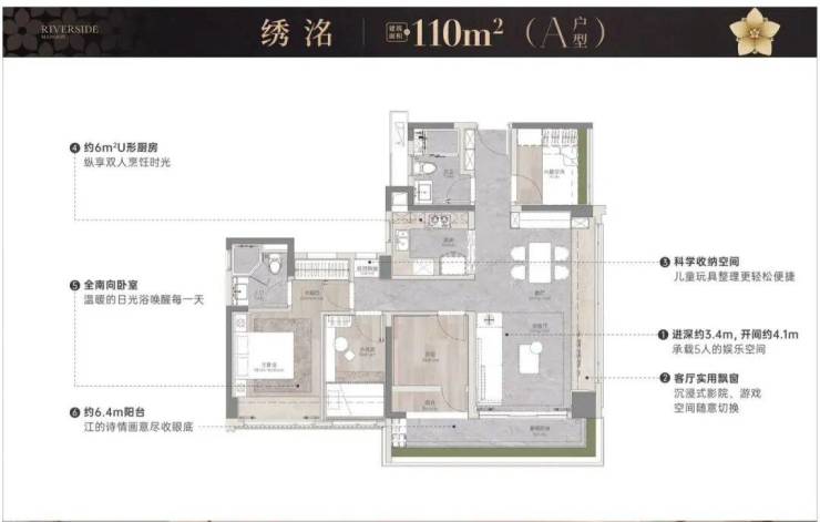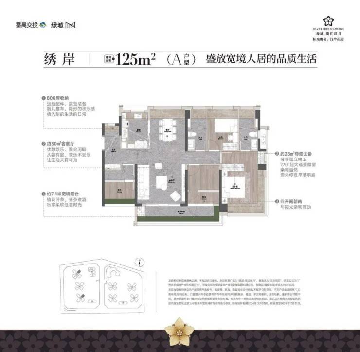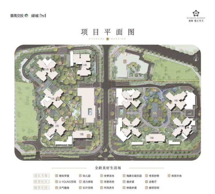 项目拥有优越的江景资源,一线临江,距江仅约50米,部分户型可实现约25米瞰江视野,其中大平层户型江景面宽可达约9.6米,呈现开阔的南向江景体验。园林设计融合岭南风格,借鉴余荫山房造园理念,营造“一江绣色印月来”的诗意景观,涵盖奇石景观、花境生态绿岛、莳花小径等,体现东方美学与现代品位。小区内部配备全龄化活动区,设有未来梦想主题区、儿童乐园、体能活动区、图书馆、健身房、瑜伽室等设施。