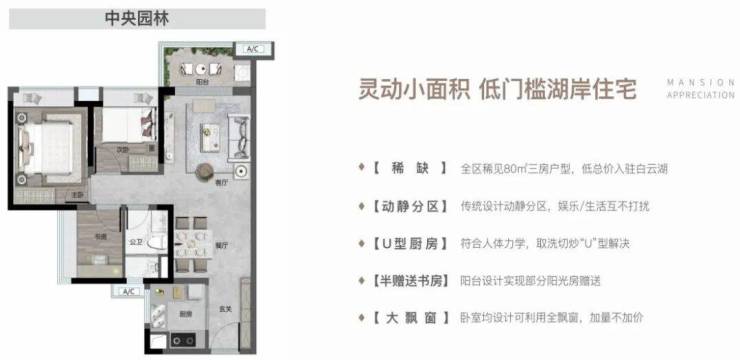 云湖壹号主推建面约80-140㎡三至四房。