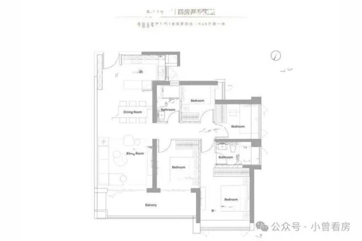 138㎡四房做到了四面朝南,每个房间都有窗户,北卧室能看到远处的湖景,南卧室对着小区里的绿化;