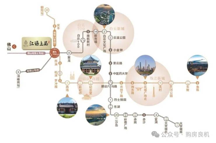 广州12号线、13号线、佛山8号线交汇,贯穿广州东西人文经济大动脉,广州五大区域核心版块无缝直达。