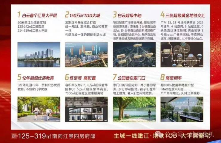 白云首个珠江大平层,125-142㎡南向江景4房,214-319㎡大平层,超高使用率,江景豪宅,市场罕有