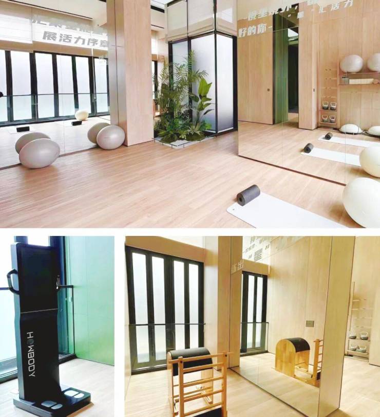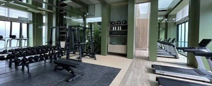 健身房提供跑步机等健身器材,瑜伽等健身区域,另外还配置了HOWBODY智能体测仪,帮助自身进行身材管理。