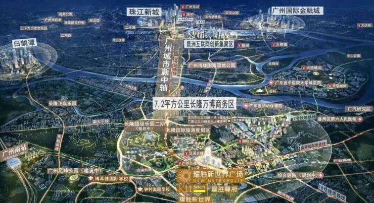 耀胜新世界广场项目位于万博-长隆商圈三轨交汇枢纽之上,三号线和七号线及佛莞城际轨道线交汇, 生活圈串连起珠江新城中央商务区、高铁南站及白云机场,快速便捷辐射东莞、广州、佛山三个大湾区城市。