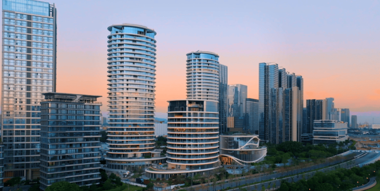 鹏瑞金融城项目的业态阵容对标全球地标,打造国际顶级城市综合体,除了上面提到的深湾会,还涵盖了顶级公寓、奢华酒店、高端定制商业、文化艺术中心、超甲级写字楼等业态。这个业态阵容,与深圳湾1号如出一辙。而且从⽬前照⽚看,项目各业态的外观也是很牛,气势宏伟,高低错落。