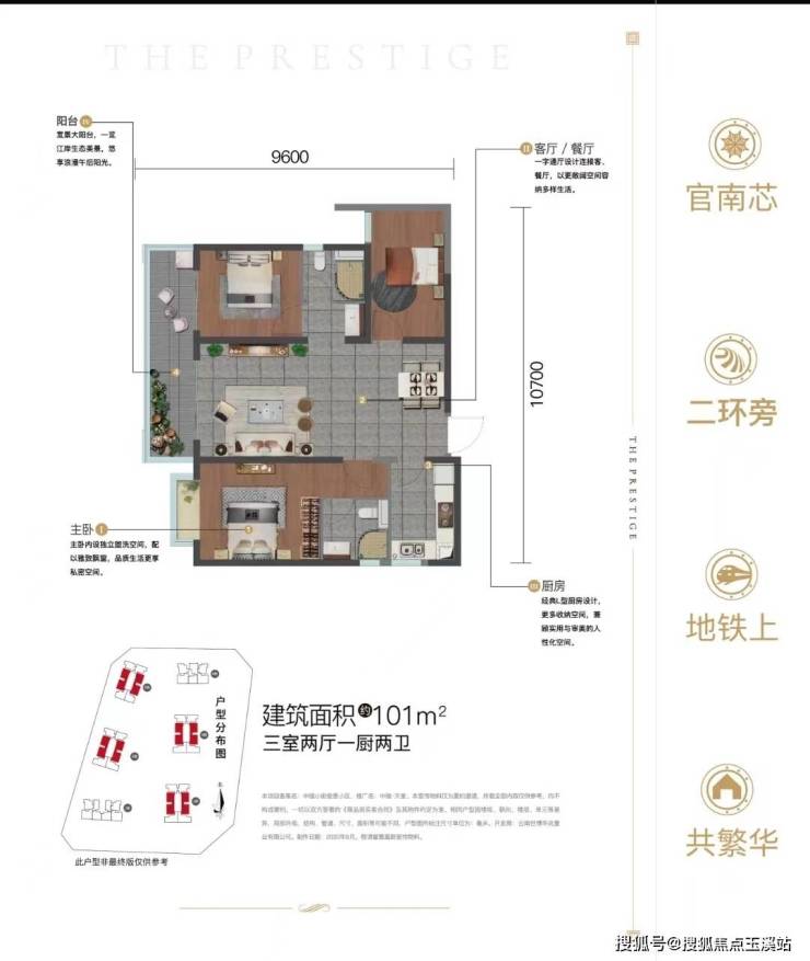 建面约101㎡ 三室两厅一厨两卫