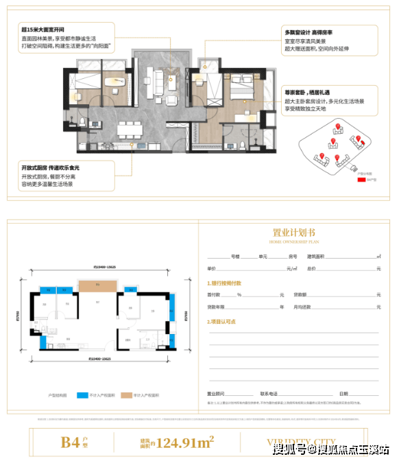 项目采用精装交付标准,2.9米的层高营造开阔空间感。主力户型设计尤为出彩:建面约118㎡的四房两卫户型,采用经典的"四叶草"布局,保证每个家庭成员都有独立空间;约134㎡的改善型户型则配置了阔景阳台和独立家政间,体现人性化考量。所有户型均做到明厨明卫,部分户型还创新性地设计了双阳台系统。