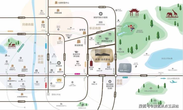 项目择址世博园与呼马山森林公园的生态中轴,坐拥6270亩世博园绿肺与万亩呼马山天然氧吧。独特的"三园一寺"格局(世博园/呼马山/白沙河公园+昙华寺)形成天然生态屏障,而西南林业大学的学术氛围与明代古建的文化积淀,共同编织出"生态圈,文教圈"的黄金生活图谱。更难得的是,爱琴海、同德广场等六大商圈构成商业辐射带,实现从森林晨跑到都市夜生活的无缝切换。
