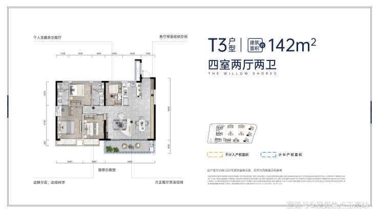 3. **全龄段交互空间**:次卧预留可拆卸隔墙,满足从婴儿房到青少年房的成长演变