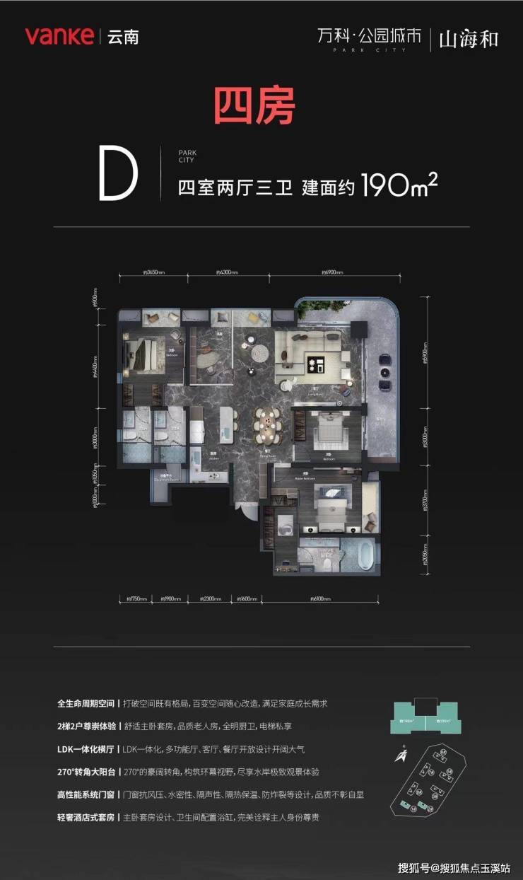 全生命周期空间,2梯2户尊崇体验,LDK一体化设计,270°转角大阳台,高性能系统门窗,轻奢酒店式套房