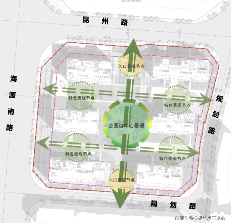 ⼀轴两带,⼀心六点全龄段规划,超3000㎡中庭景观|奢阔楼间距