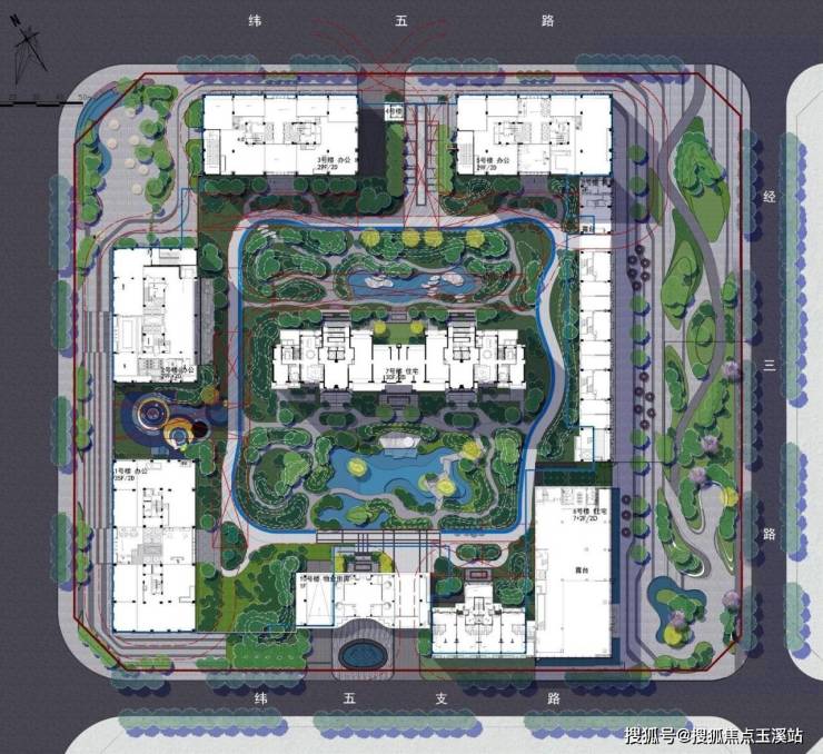 建筑立面的设计灵感来源于白鹭的优雅形态,设计师巧妙地将飞鸟的灵动线条转化为建筑的韵律之美。浅色铝板与石材的精心搭配,配合超大高透玻璃的运用,让整个建筑群既挺拔向上又不失轻盈质感。在细节处理上,项目更是不遗余力:金属铝板装饰的线框、精心设计的动感屋顶造型,无不彰显着开发者对品质的极致追求。