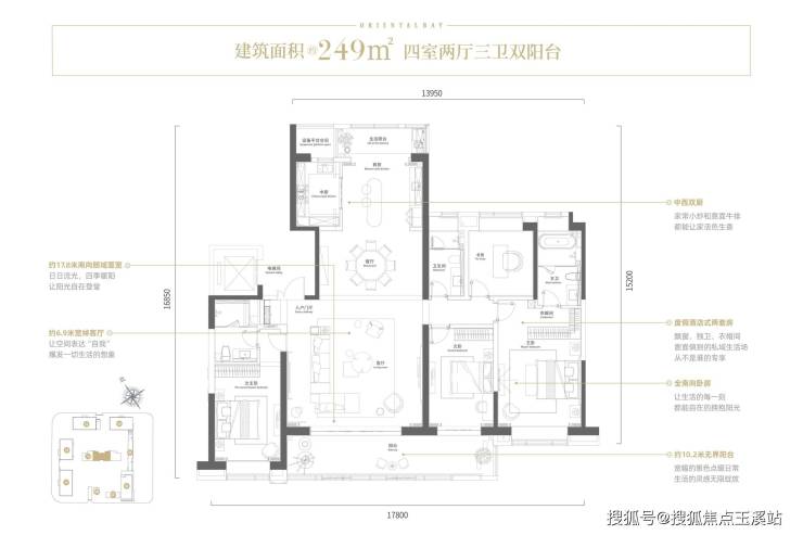 在产品设计上,云锦东方展现出对现代生活方式的深刻洞察。建面约249平方米的大平层拥有约17.8米的南向面宽,LDKB一体化设计让客餐厨空间流畅贯通,约6.9米宽的客厅与10.2米景观阳台共同构建出开阔的生活场域。特别值得一提的是180°无界景观视野,配合超100米的极限视距,将巫家坝的城市繁华尽收眼底。中西双厨配置更是考虑到了当代家庭多元化的烹饪需求,U型中厨动线与开放式西厨相得益彰,配备的灶台抽拉屉和可移动电源插头等细节,无不体现着设计者的用心。
