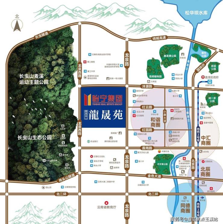 项目地处龙泉路与红云路交汇处,恰逢龙泉板块成熟配套与北部山水新城规划利好的双重辐射。随着茨坝片区被纳入北市重点发展核心区,周边已聚集俊发、融创等品牌开发商的城市更新项目,龙泉西路改造工程更将进一步提升区域通达性。实测数据显示,项目生活圈覆盖和谐广场、北辰商圈等6大商业综合体,盘龙小学御龙半山校区步行可到,5000㎡社区医院与红云医院构成双重医疗保障。特别值得注意的是,项目毗邻长虫山国家公园,PM2.5常年低于主城区均值30%,形成天然的健康屏障。